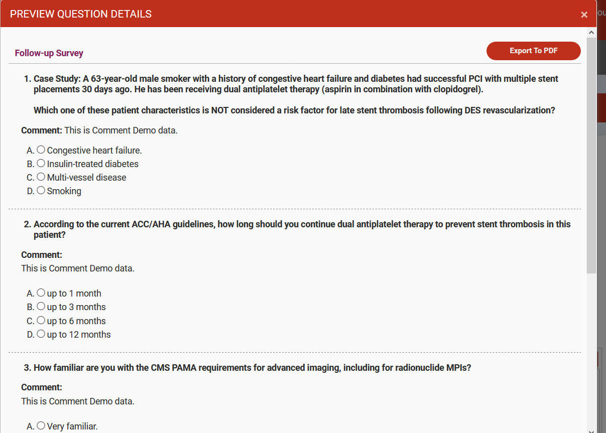 This feature has drop down with following values (Copy from Follow-up, Copy from Pre-Assessment, Copy from Post-Assessment, Copy from Evaluation) for copying follow-up survey questions.