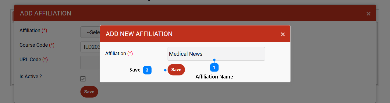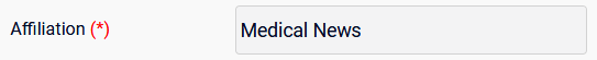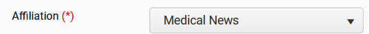 If the affiliation isn't available, administrative user can add new affiliation record by selecting "Add New" option next to Affiliation drop down field.