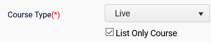 Select Live from the Course Type drop down data field. Upon selecting the course type, system will display two course selection options i.e. List Only Course and External.