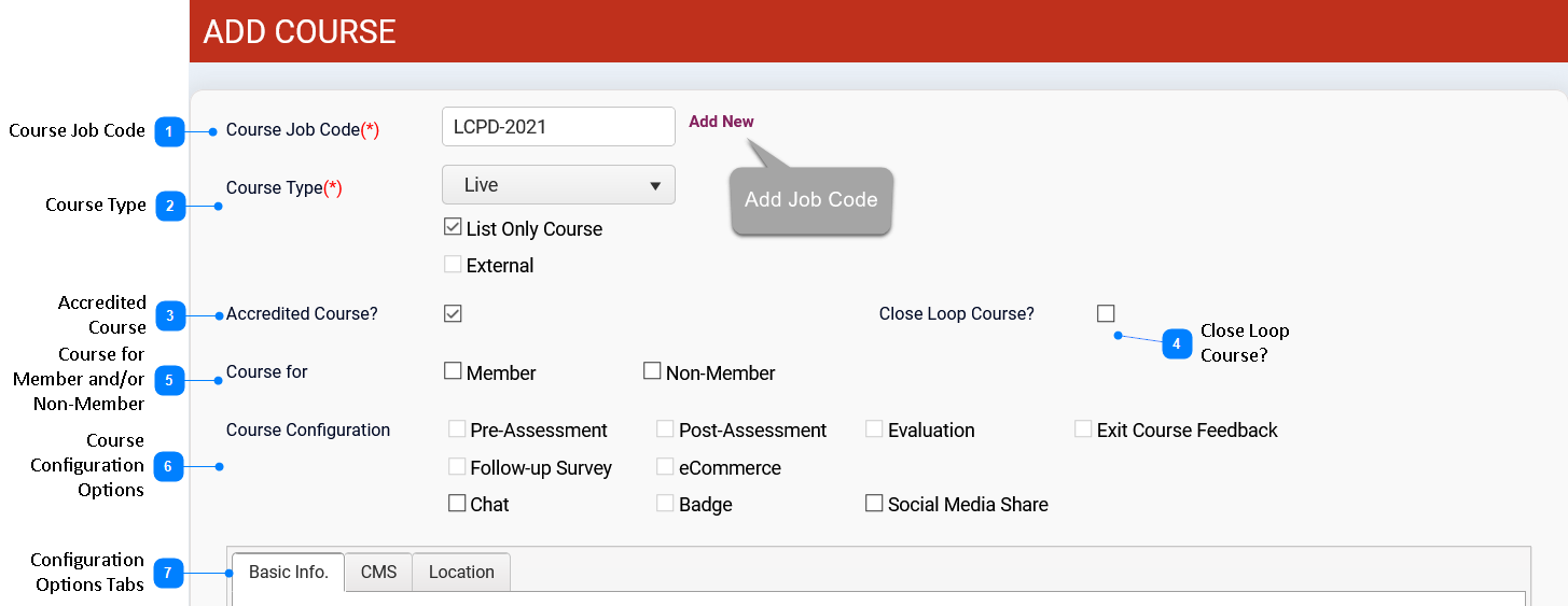 Each course is connected with the unique job code. So, first select the course Job Code defined for the live course you would like to associate with. The Add New option allows you to define the Job Code for the course, if is not defined.