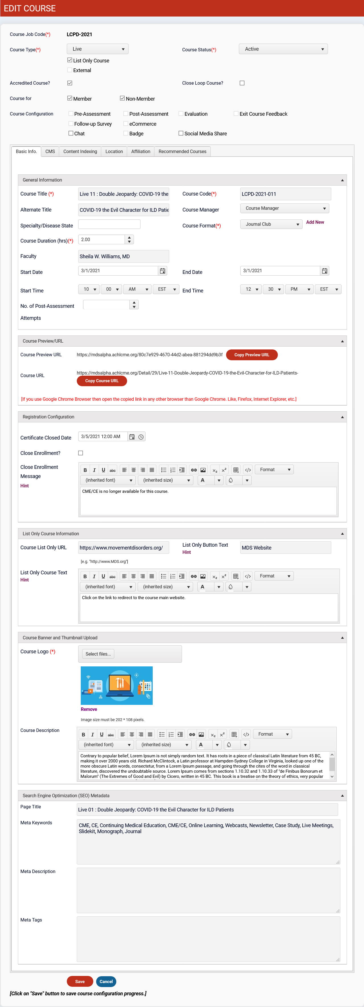 Navigation: Module Management > Course Management > Course Type > Live-List Only > Edit Live-List Only Course |