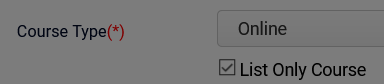 Select Online from the Course Type drop down data field. Upon selecting the course type, system will display two course selection options i.e. List Only Course and External.