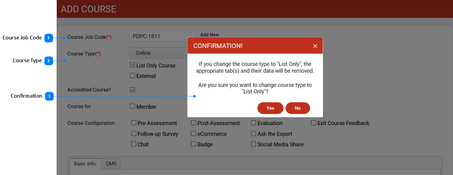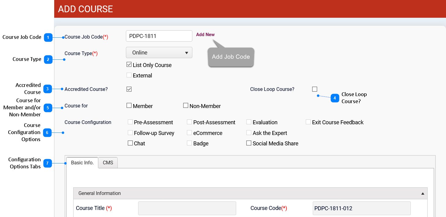 Basic Info. and the CMS configuration options are common for all course types except external courses.