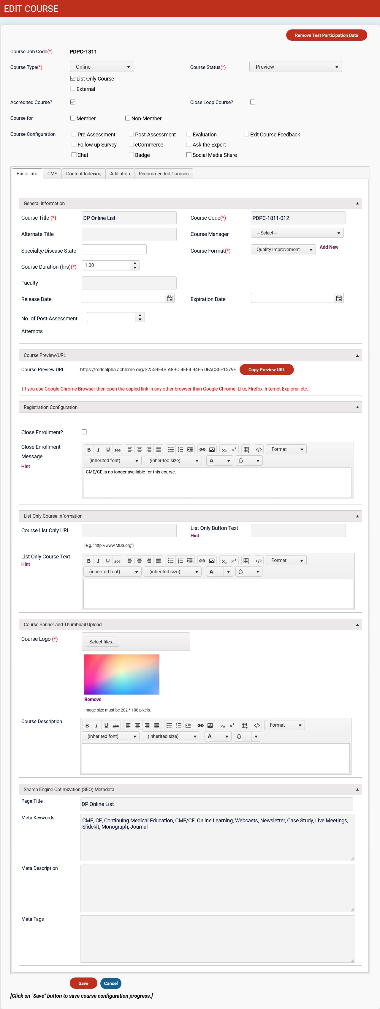 Navigation: Module Management > Course Management > Course Type > Online-List Only > Edit Online-List Only Course |