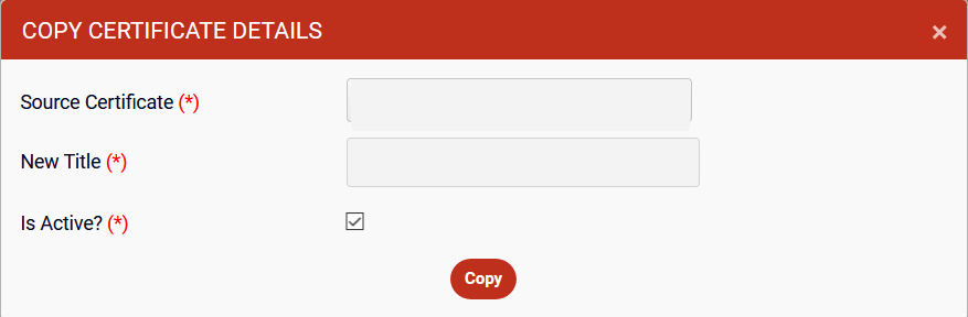 Copy Certificate option provides ability to create a new certificate based on existing defined certificate.