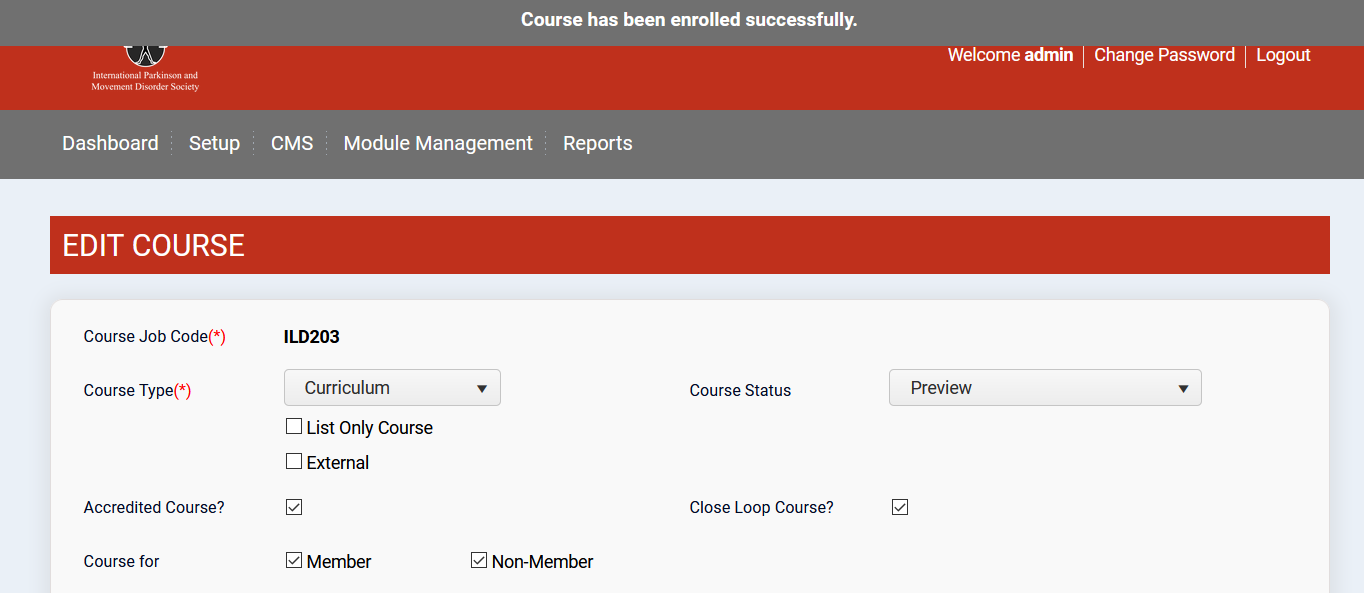 Administrative user can enroll courses by selecting "Enroll Course" option.