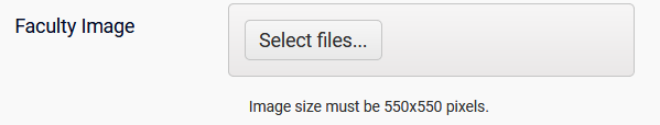 Select the faculty photo file. Click the Select Files button to browse and select the image from the location it resides.