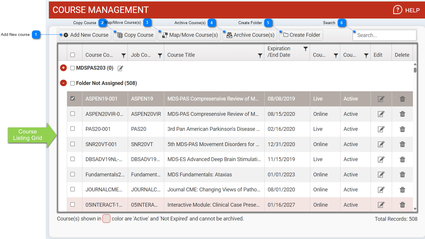 This feature allows administrative user to add/edit/delete a new course. Administrative user can add Live, Online, Curriculum, Live or Online-List Only, and Live or Online-External courses.