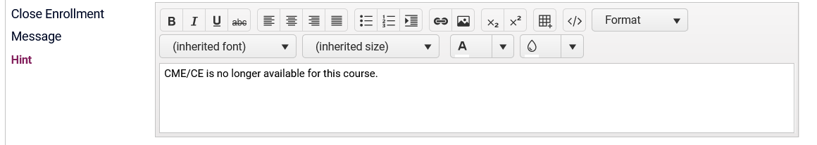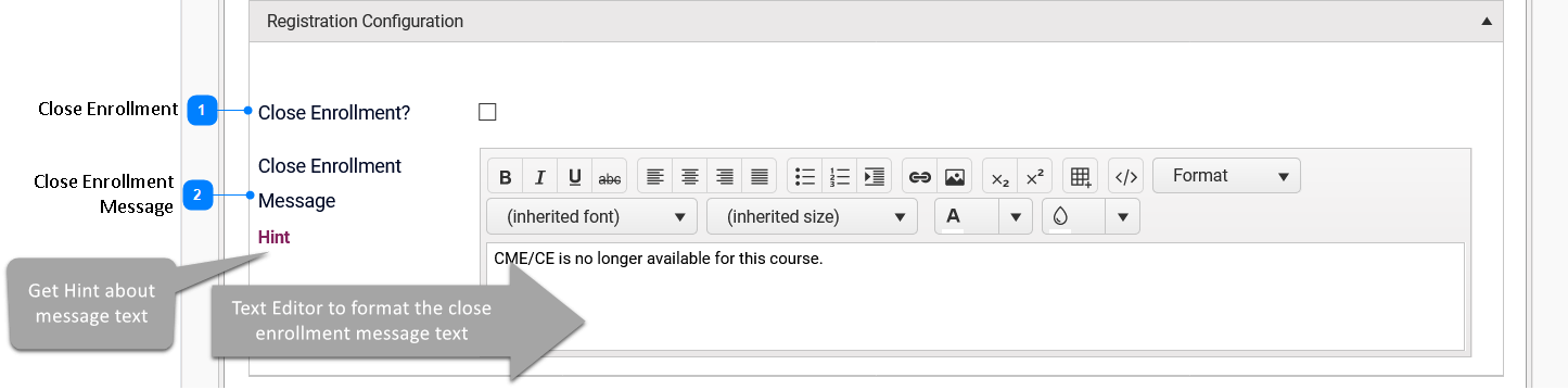 Enter the enrollment close message text here. Use Text Editor features to apply required formatting to the message text.