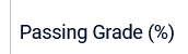 Enter the percentage value for the passing grade. Use the up or down arrow to increase or decrease % age value.