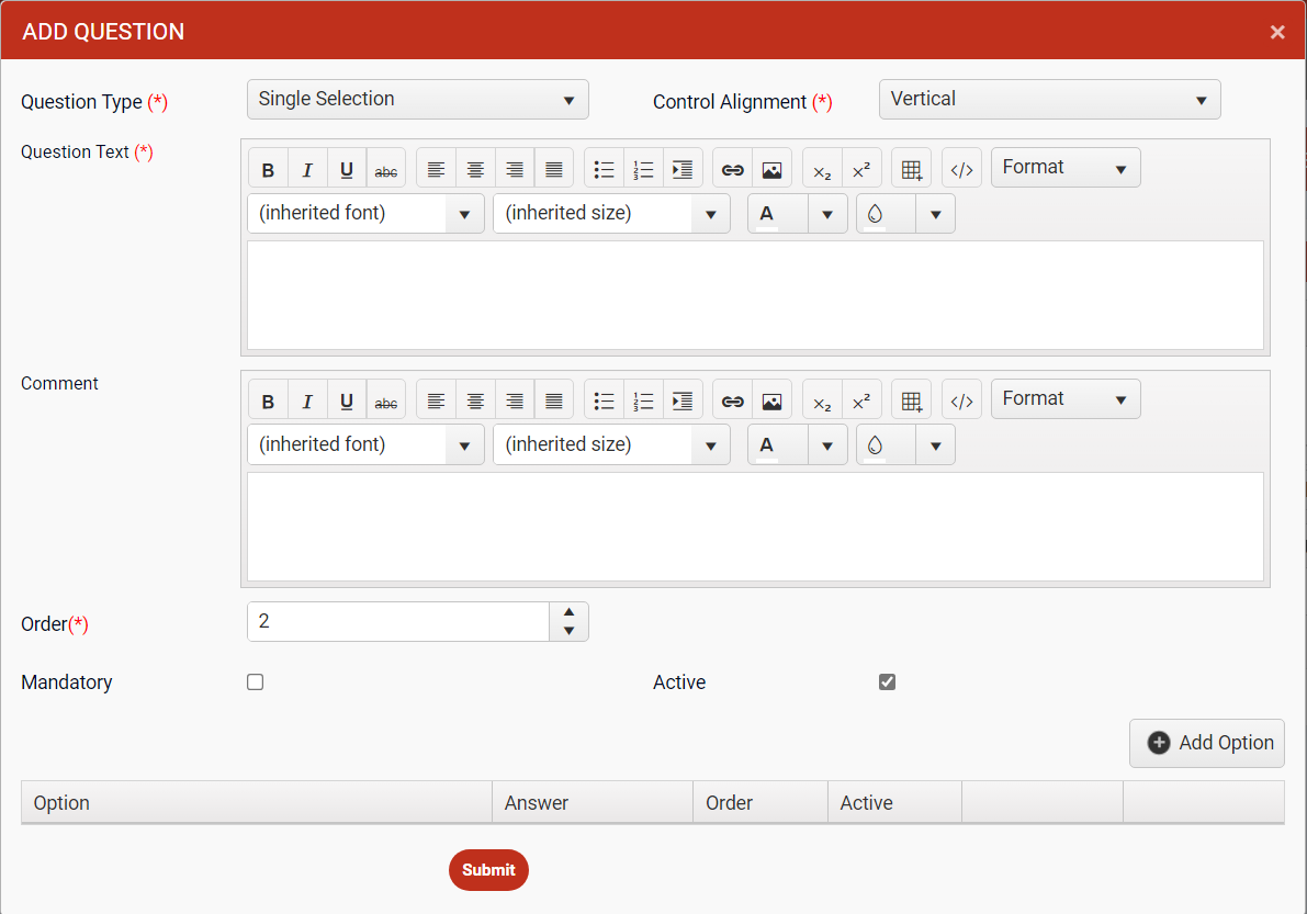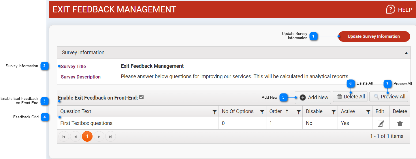 This feature allows administrative user to manage exit feedback questions.