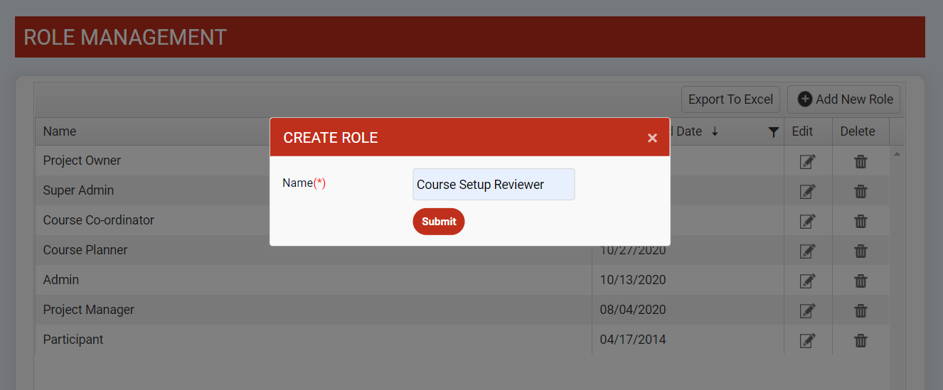This feature allows administrative user to add new role for the MDS LMS system.